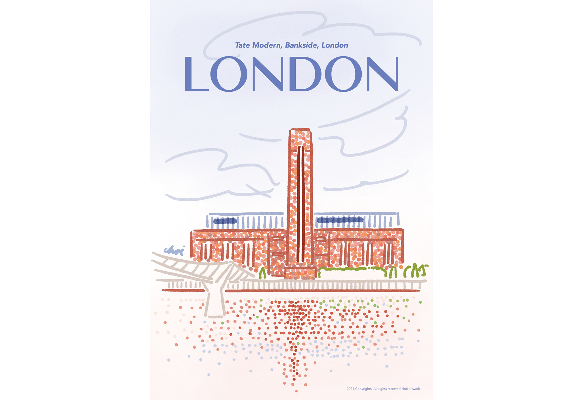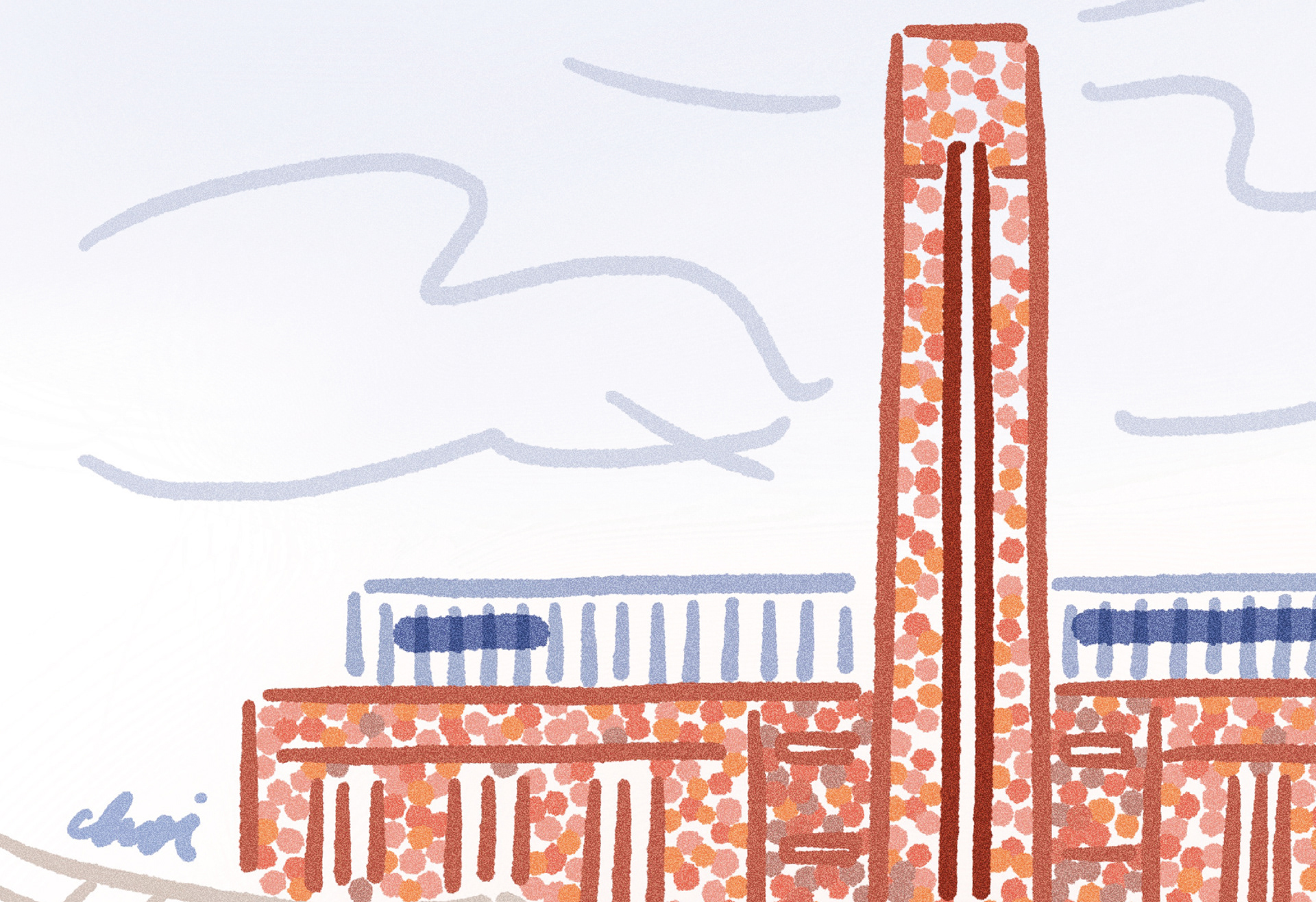This is a line drawing of the Tate Modern building in London. 런던의 테이트모던 건물을 라인드로잉으로 표현한 작업입니다.