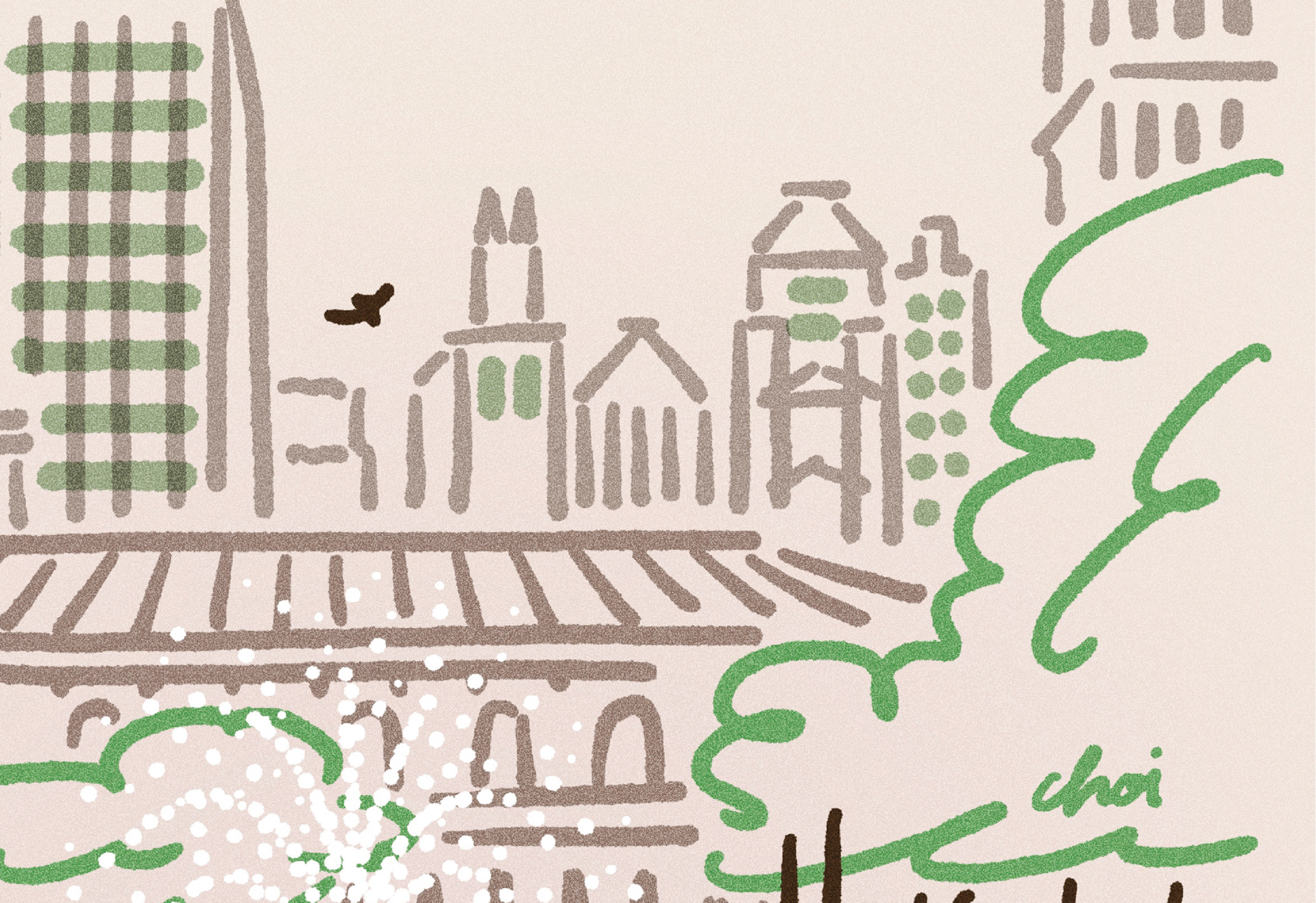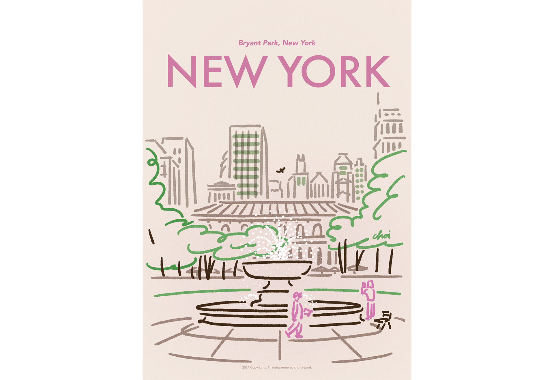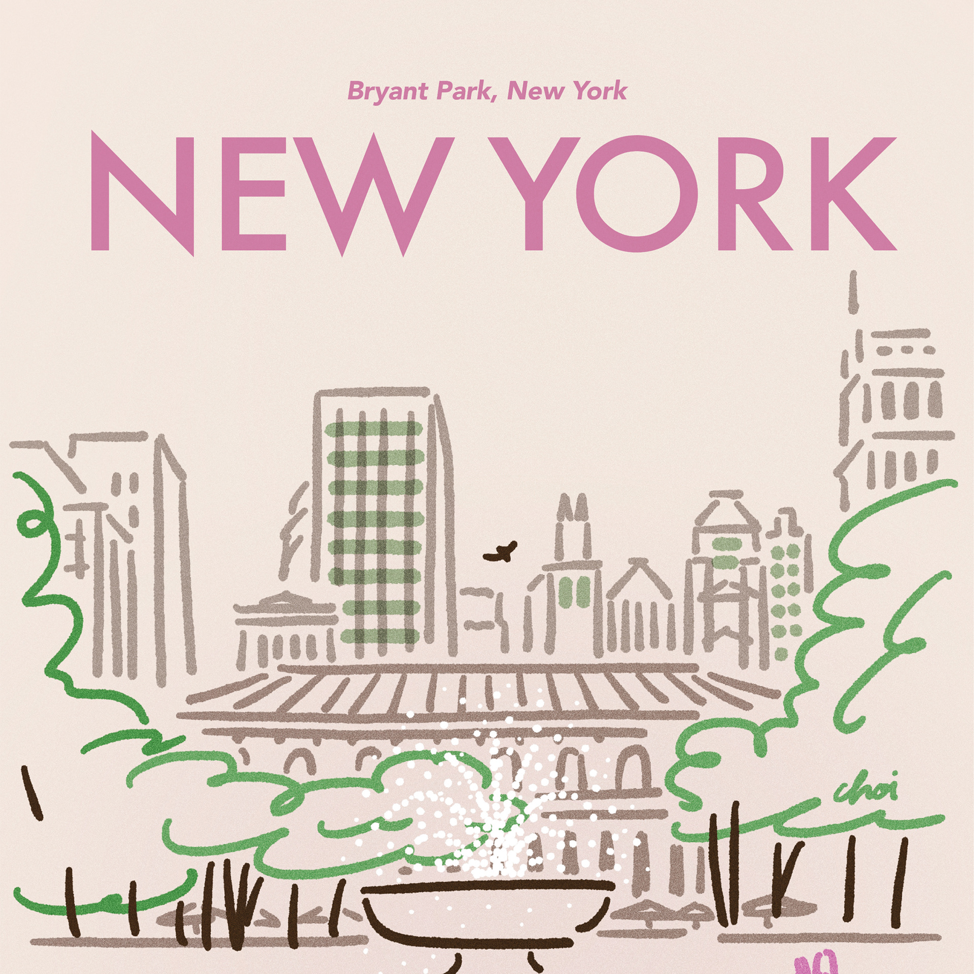 I drew a line drawing of Bryant Park in New York. 뉴욕의 브라이언트 파크를 라인드로잉으로 그렸습니다.
