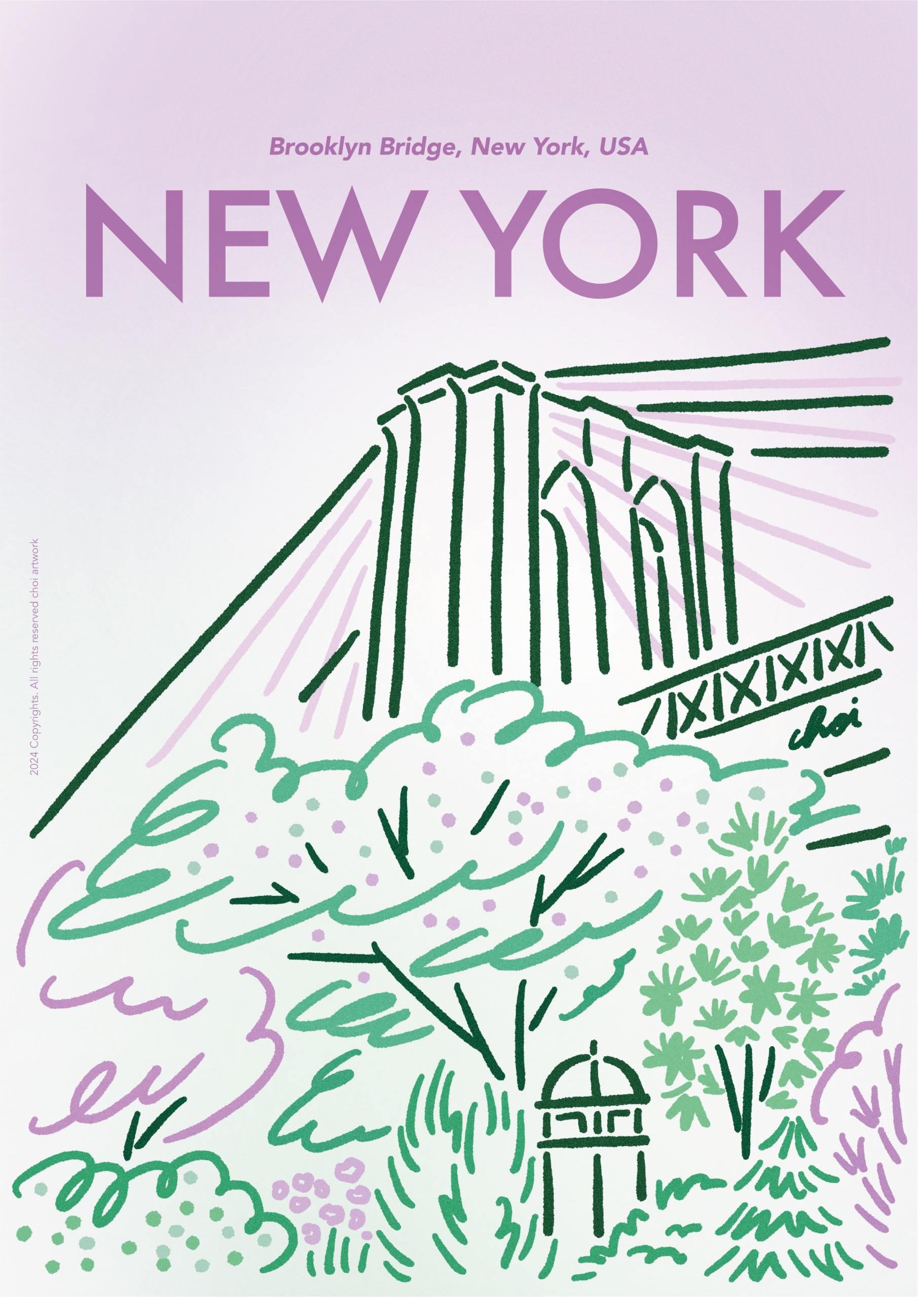I drew a line drawing of Brooklyn Bridge in New York. 뉴욕의 브루클린 브릿지를 라인드로잉으로 그렸습니다.