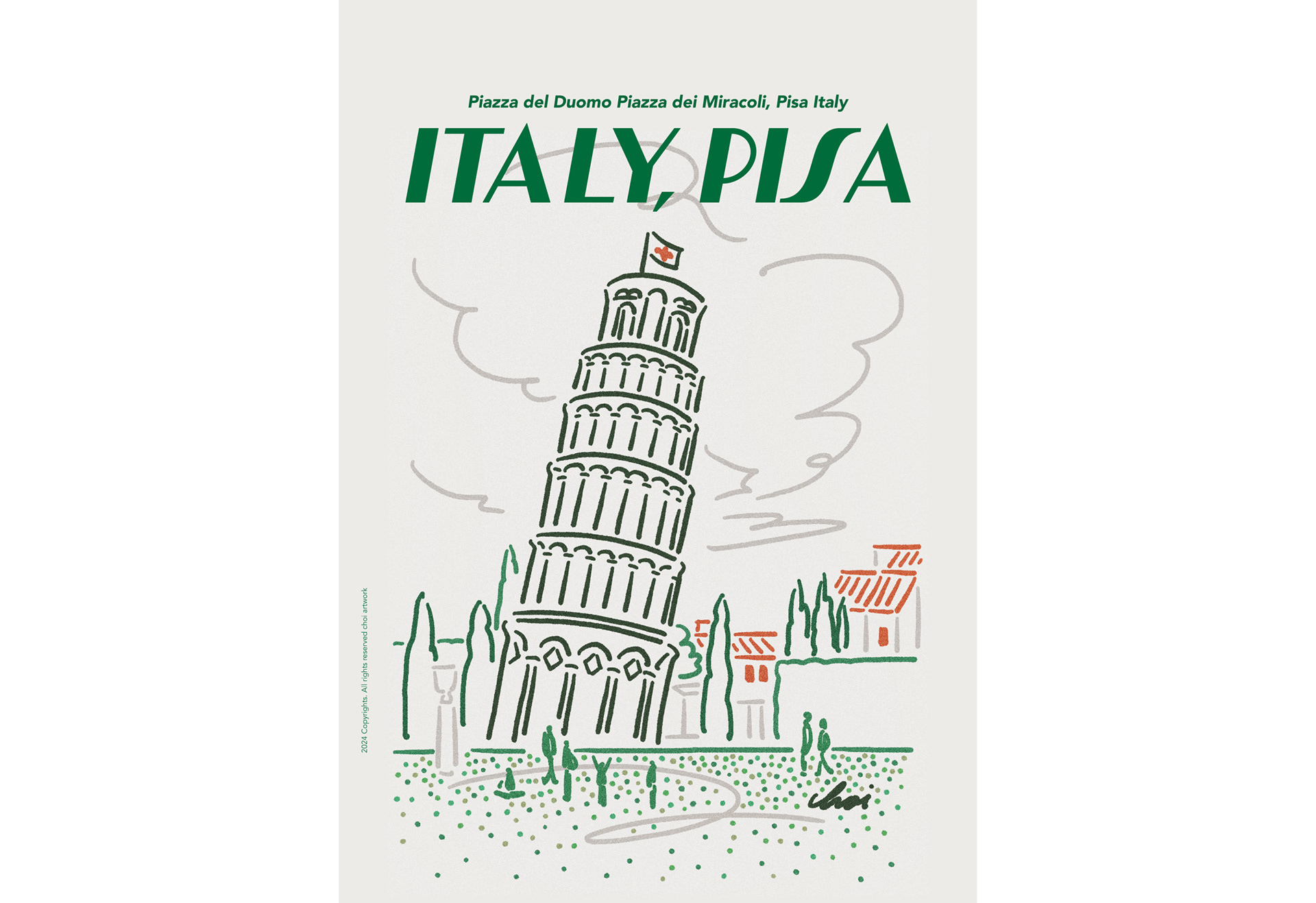 I drew a line drawing of Pisa's landscape with the Leaning Tower of Pisa as the main focus. 피사의 사탑을 메인으로 한 피사의 풍경을 라인드로잉으로 그렸습니다.