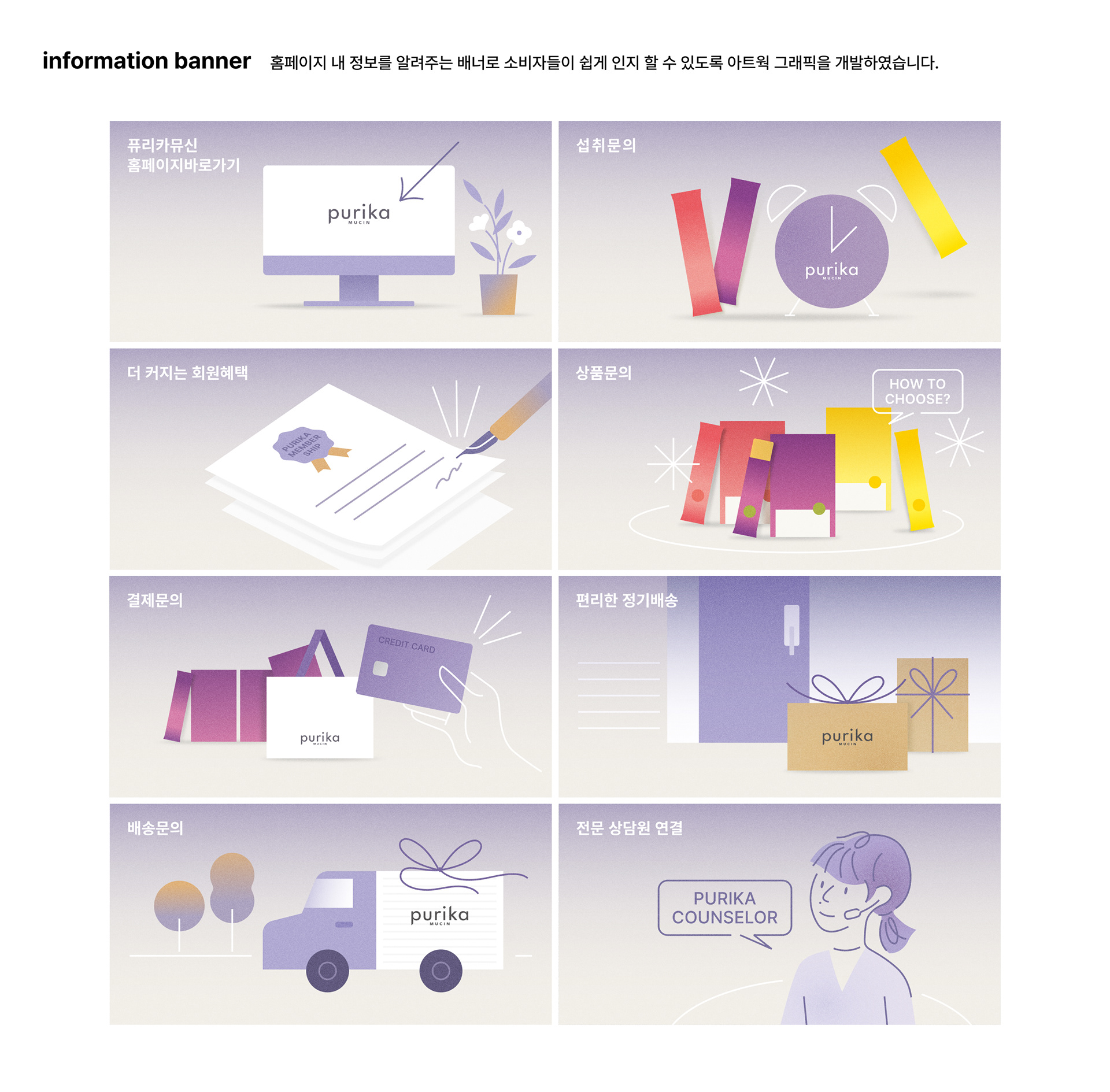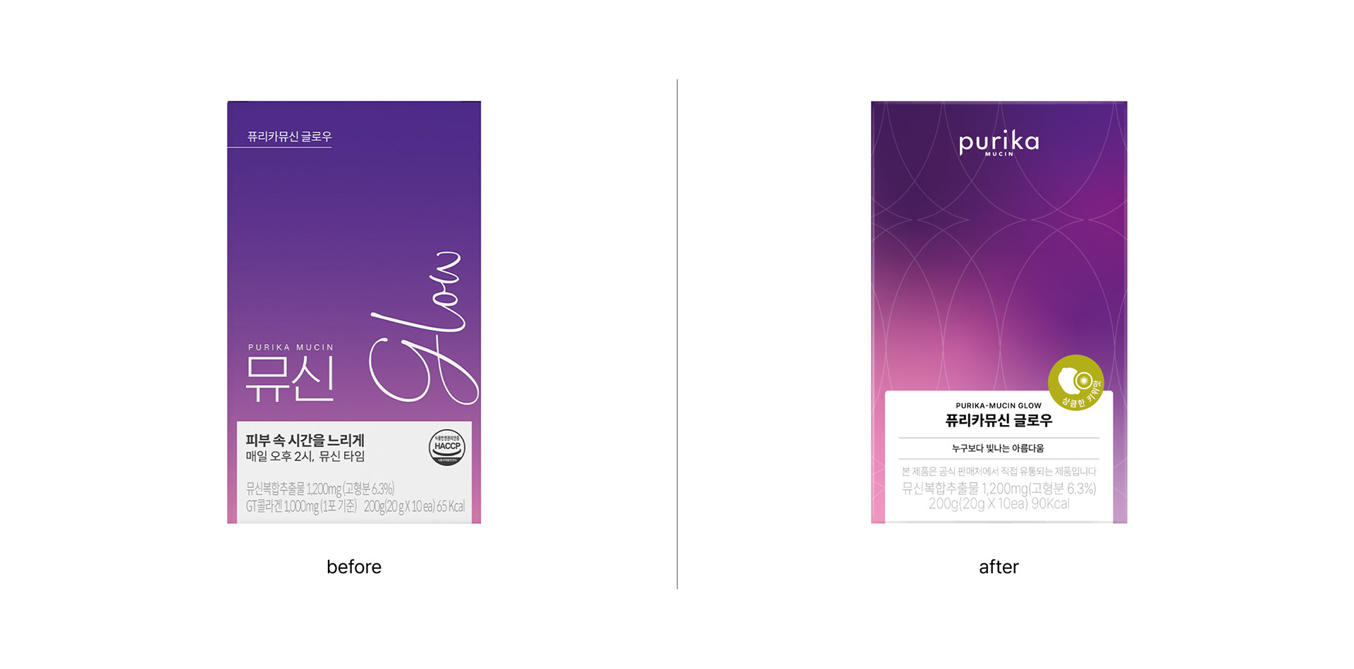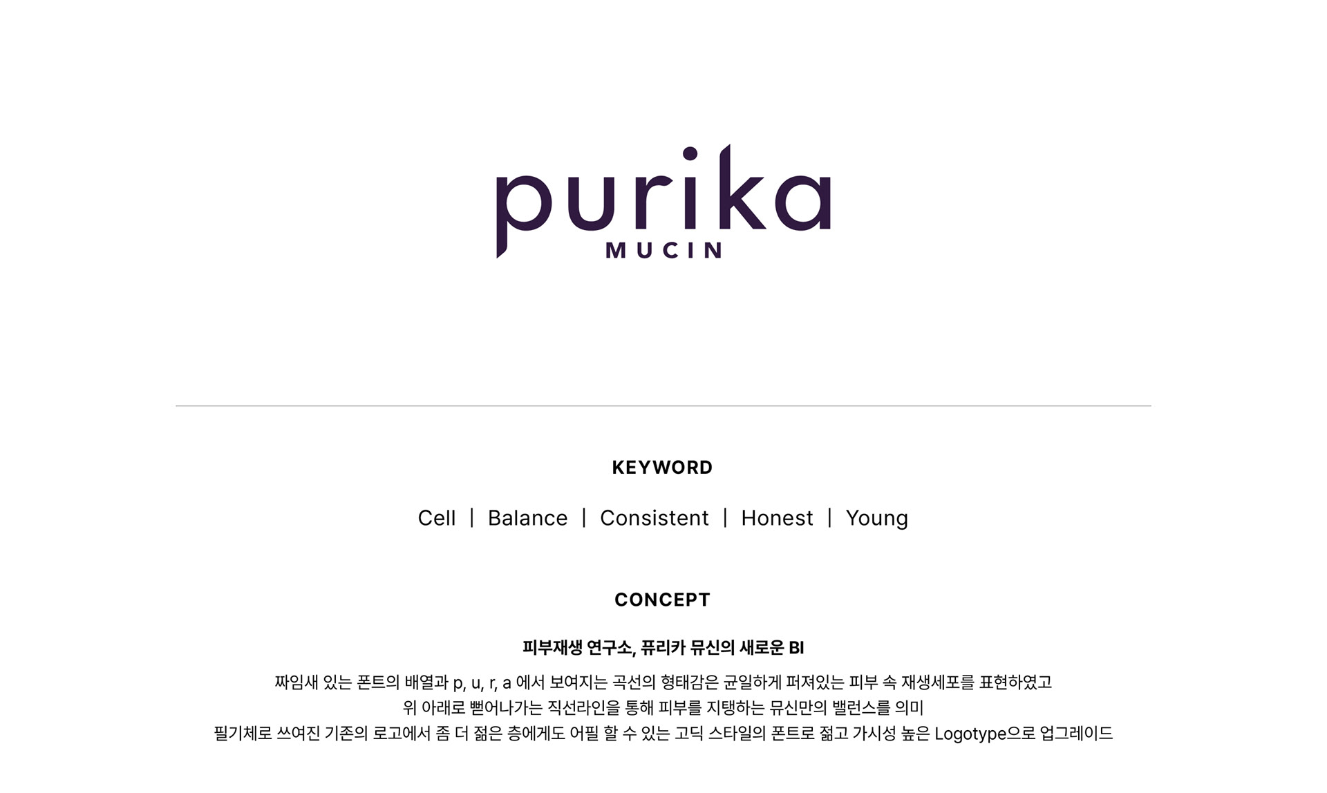 퓨리카 뮤신의 전체 브랜드 리뉴얼 및 패키지 시스템을 개발하였습니다.