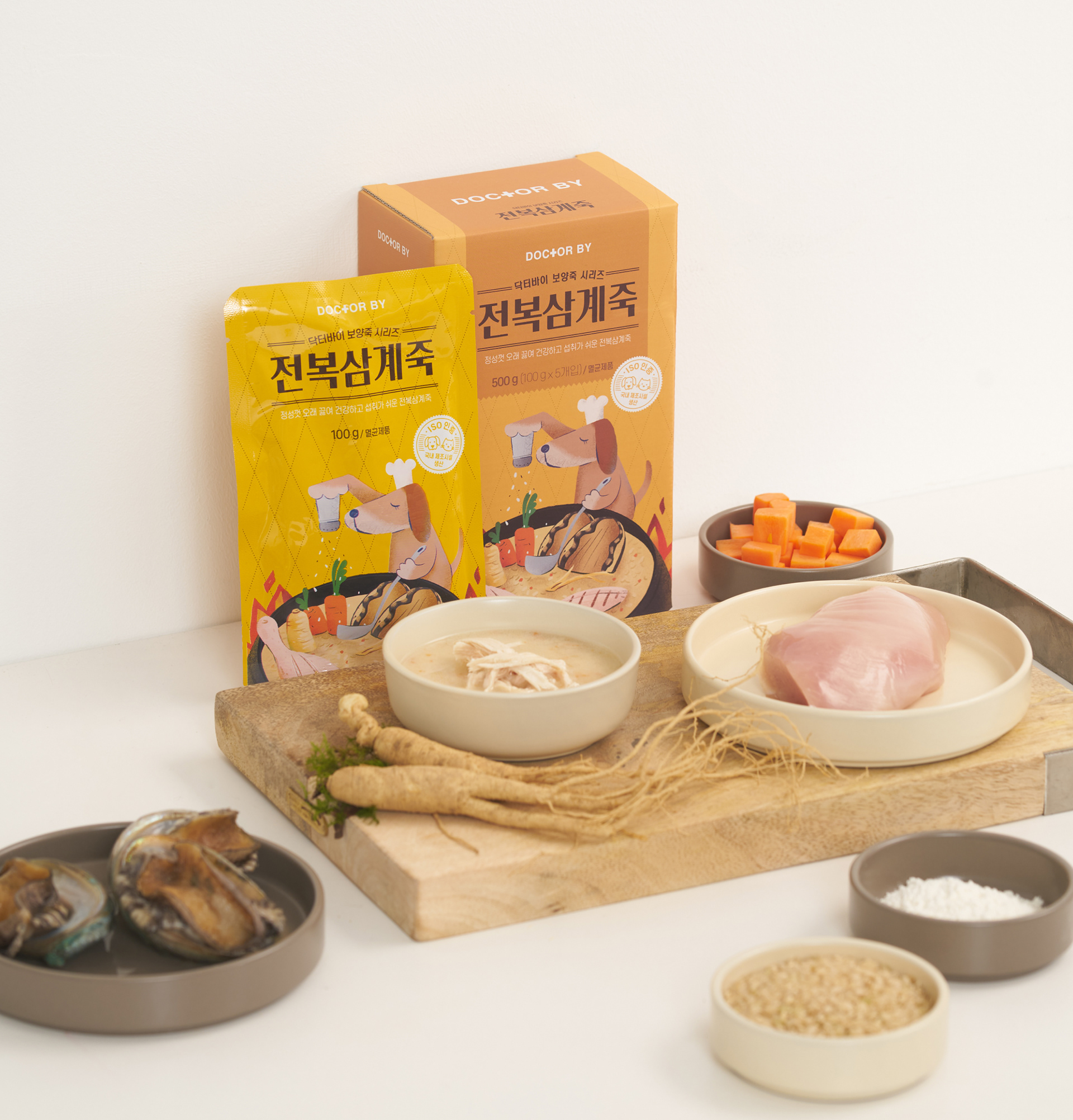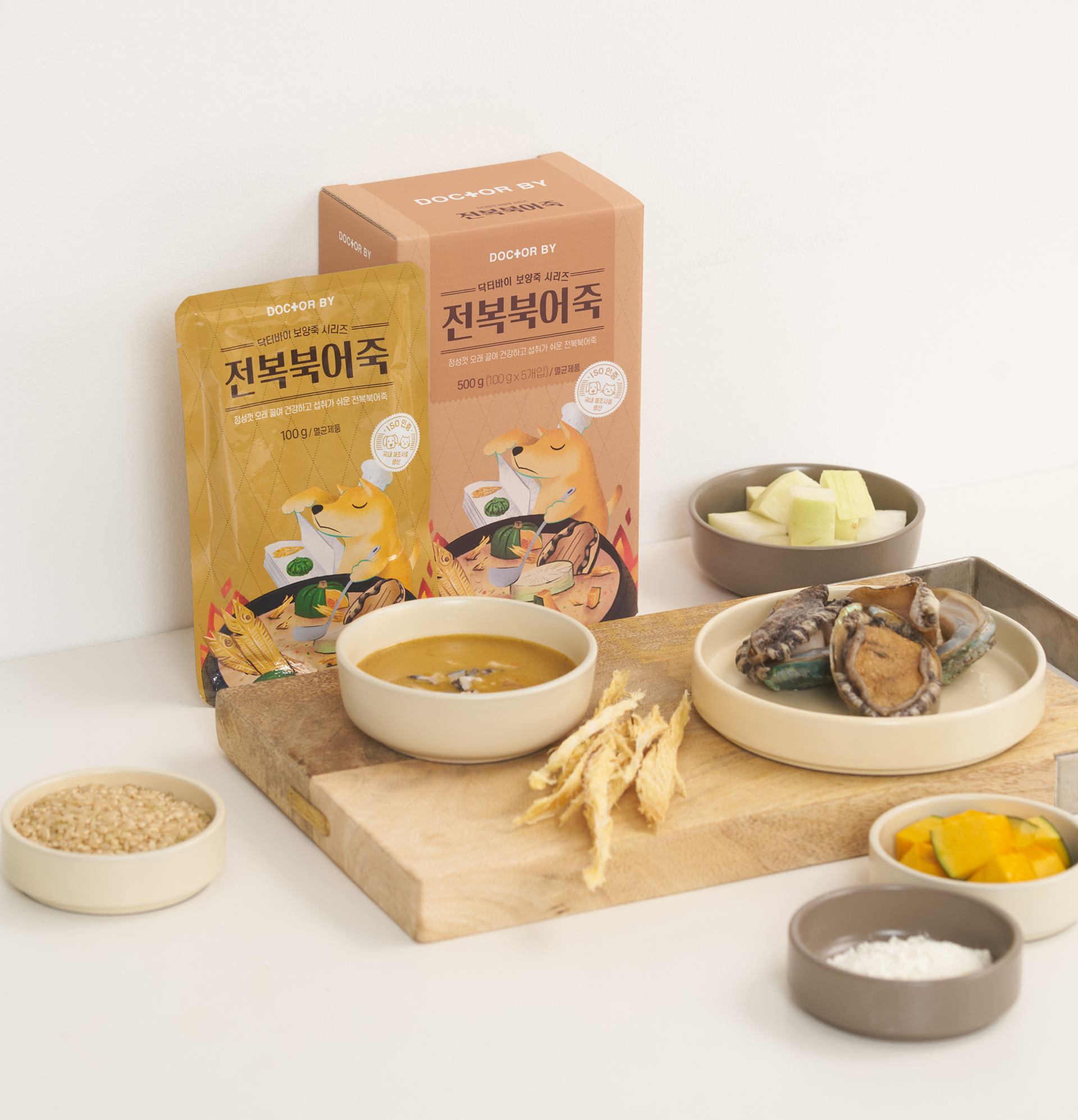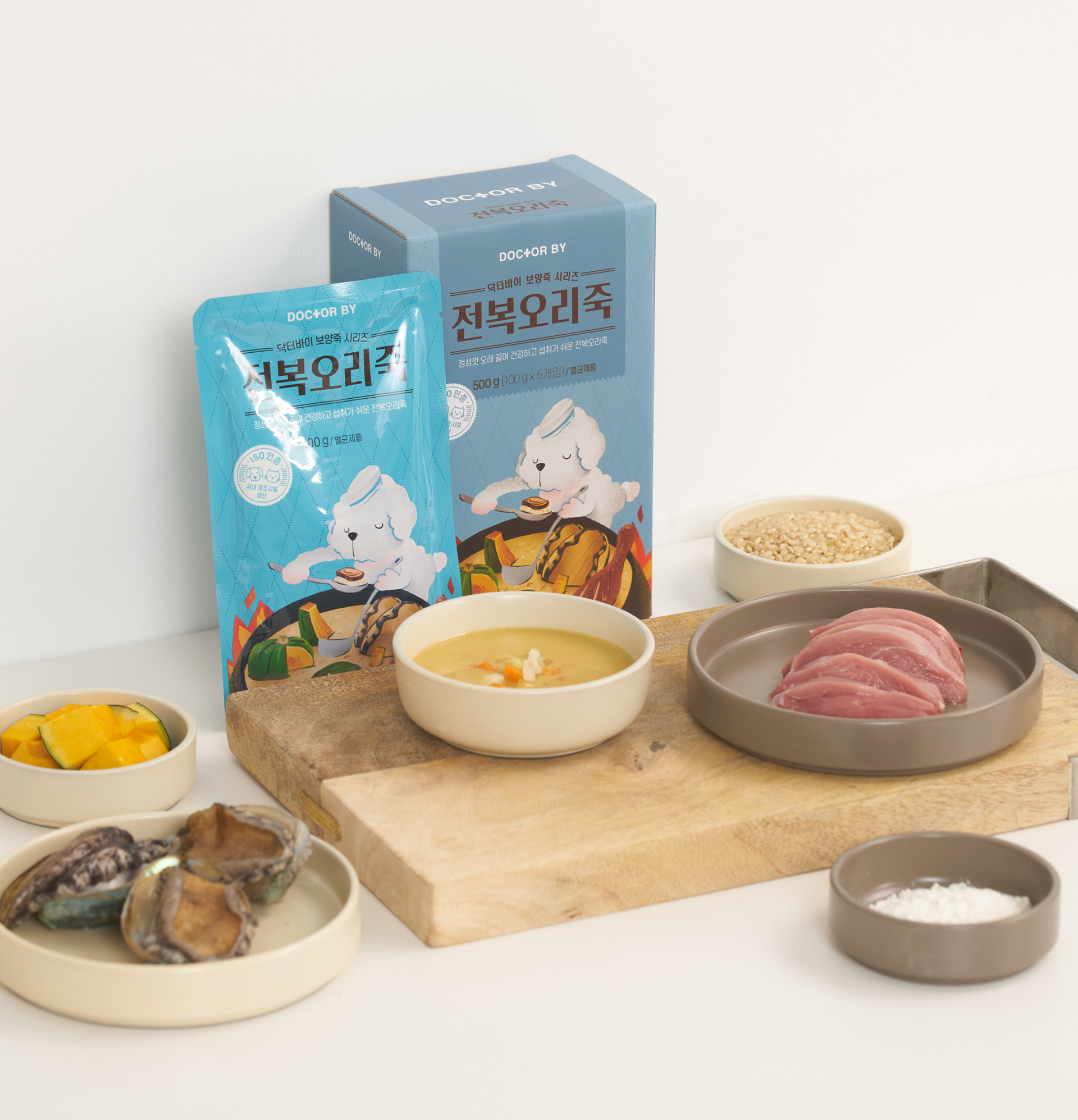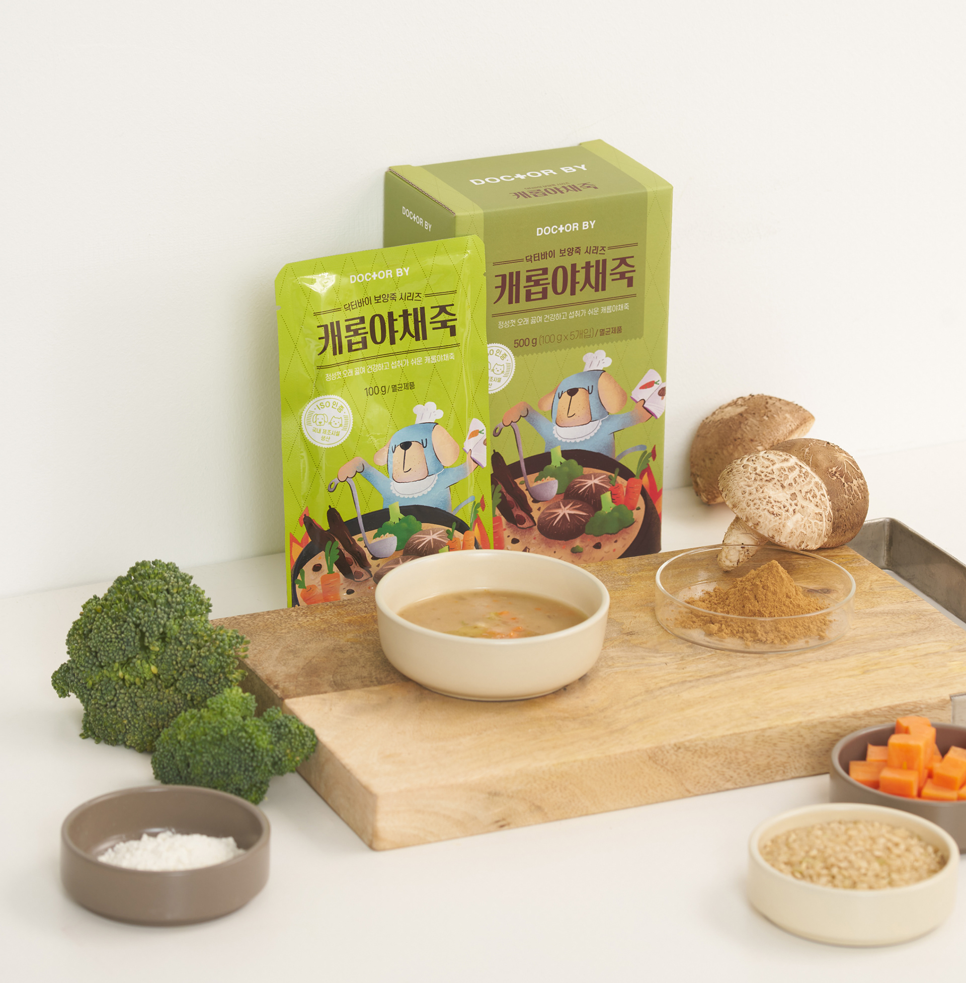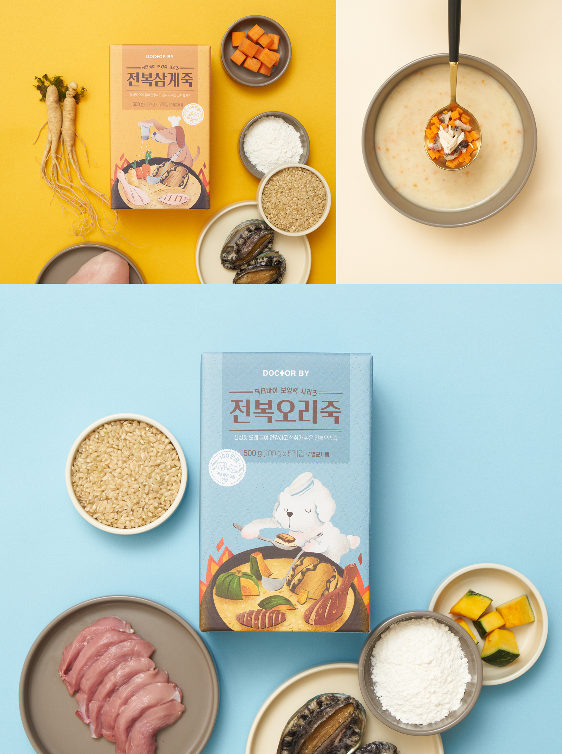 강아지들이 죽을 만드는 모습을 의인화하여 일러스트로 표현하였습니다