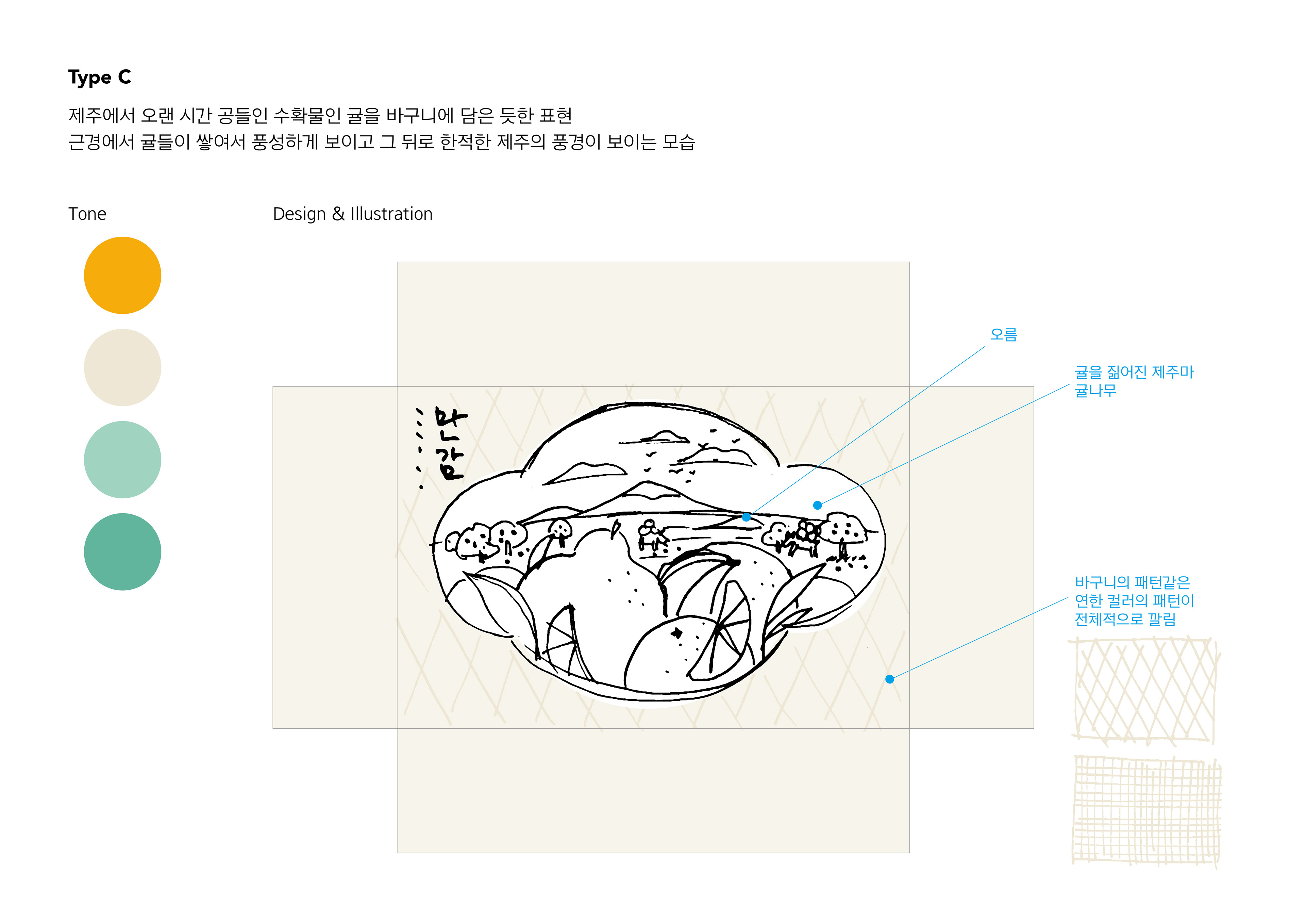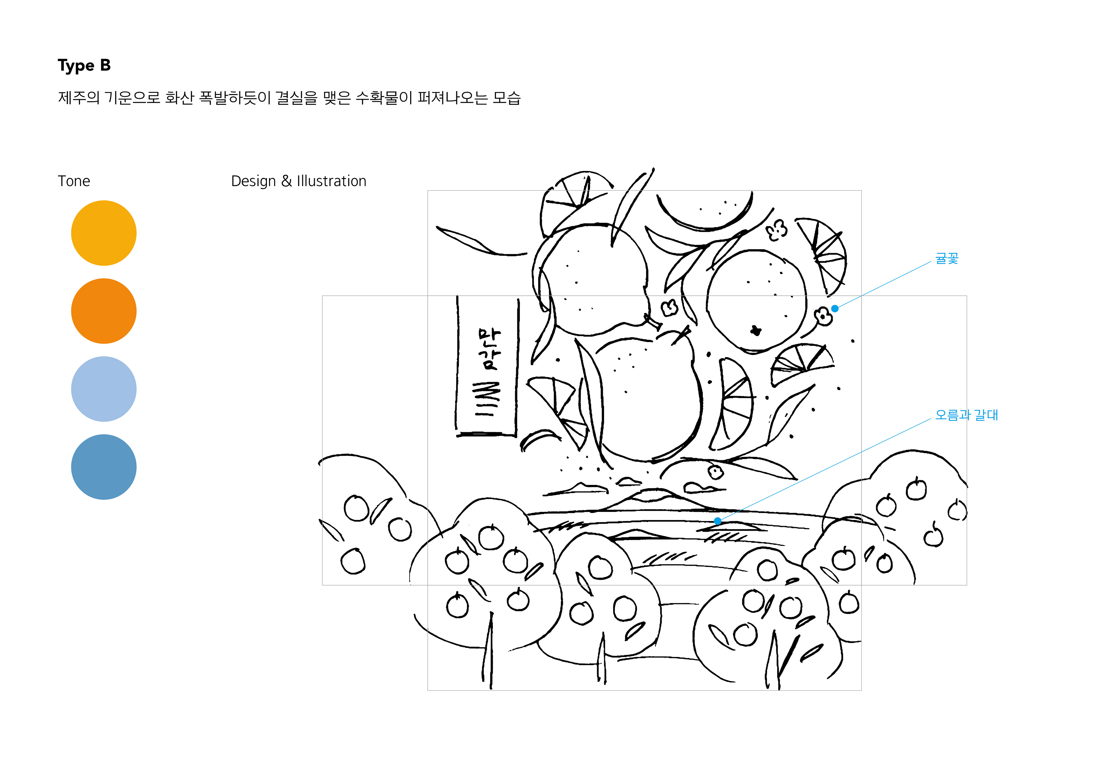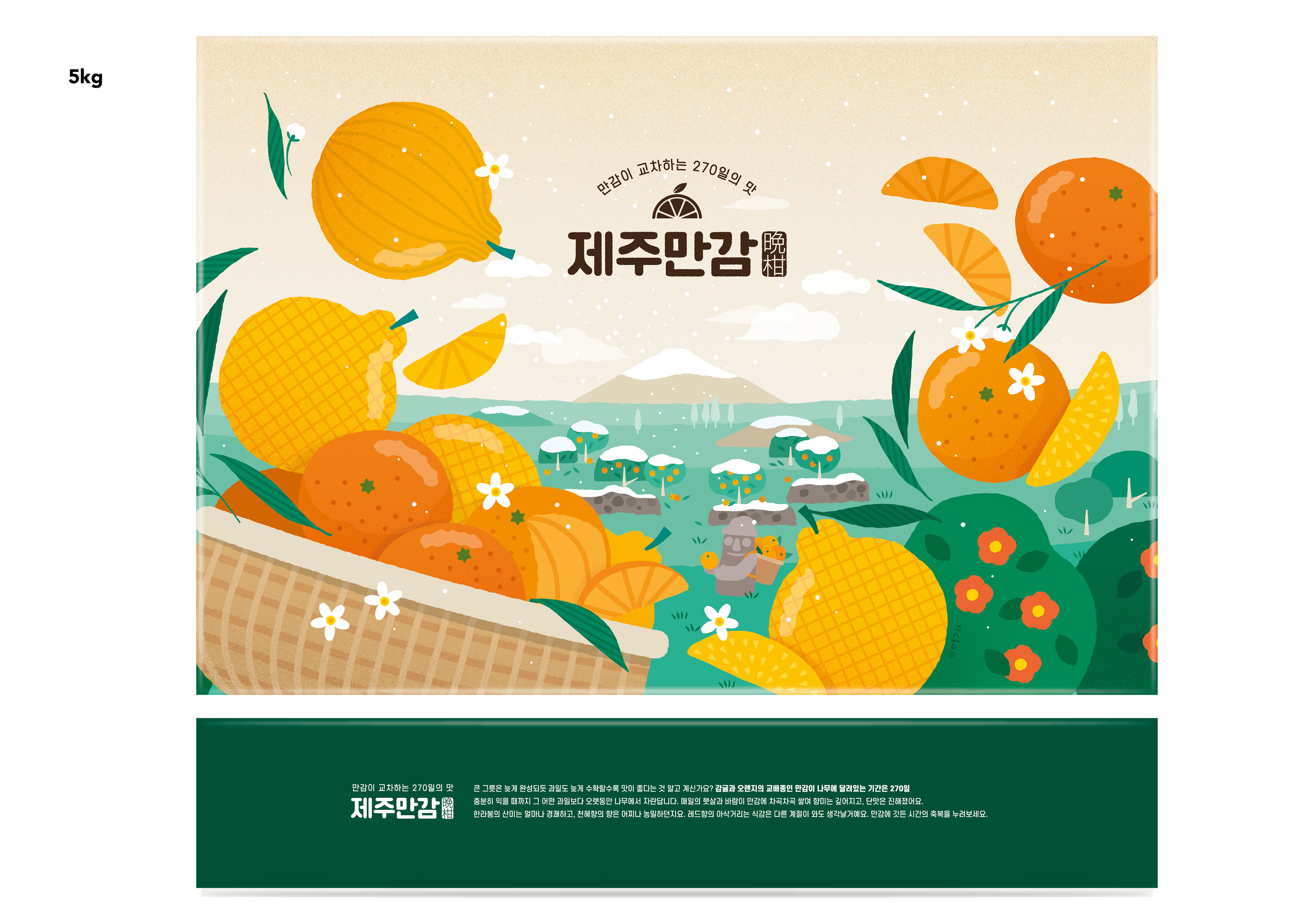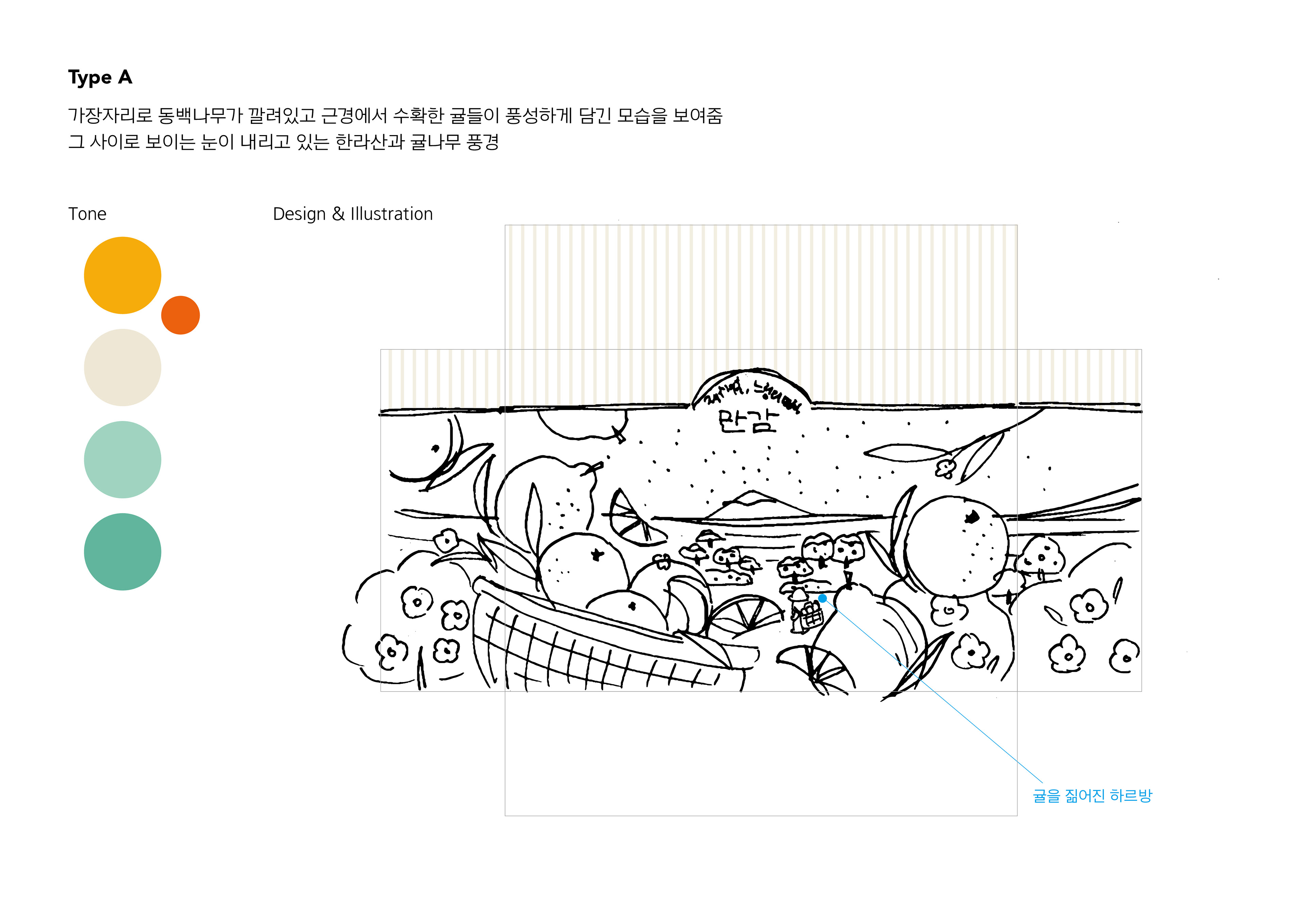 과일브랜드 Onbrix의 제주 만감 패키지에 들어가는 일러스트레이션과 디자인 작업